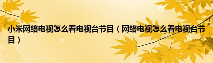大家好,小晋来为大家解答以下问题,关于小米网络电视怎么看电视台节目,网络电视怎么看电视台节目很多人还不知道,今天让我们一起来看看吧!