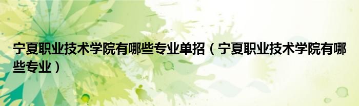 宁夏职业技术学院有哪些专业单招(宁夏职业技术学院有哪些专业)