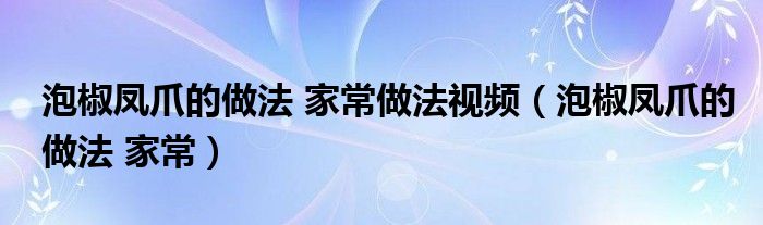 大家好,小晋来为大家解答以下问题,关于泡椒凤爪的做法 家常做法视频,泡椒凤爪的做法 家常很多人还不知道,今天让我们一起来看看吧!