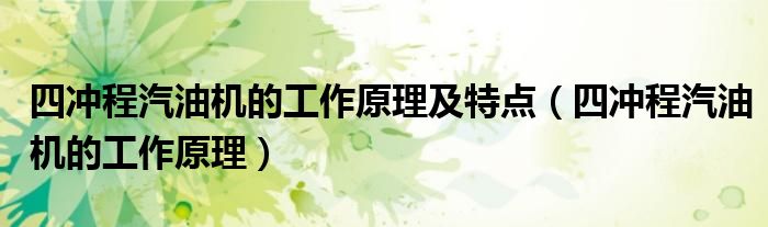 四冲程汽油机的工作原理及特点(四冲程汽油机的工作原理)