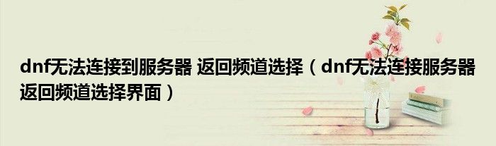 dnf无法连接到服务器 返回频道选择(dnf无法连接服务器返回频道选择界面)