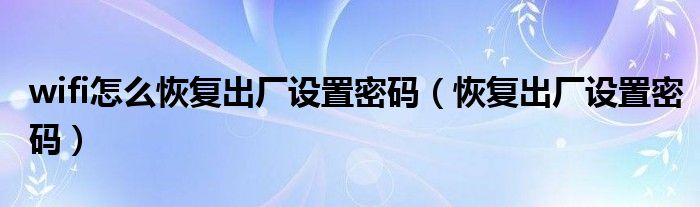 wifi怎么恢复出厂设置密码(恢复出厂设置密码)