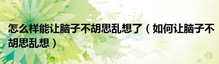 关于怎么样能让脑子不胡思乱想了,如何让脑子不胡思乱想这个很多人还不知道,今天菲菲来为大家解答以上的问题,现在让我们一起来看看吧!