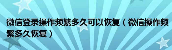 微信登录操作频繁多久可以恢复(微信操作频繁多久恢复)