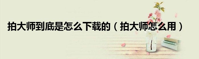 大家好,来宝来为大家解答以下问题,拍大师到底是怎么下载的,拍大师怎么用很多人还不知道,今天让我们一起来看看吧!