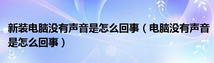 大家好,来宝来为大家解答以下问题,新装电脑没有声音是怎么回事,电脑没有声音是怎么回事很多人还不知道,今天让我们一起来看看吧!