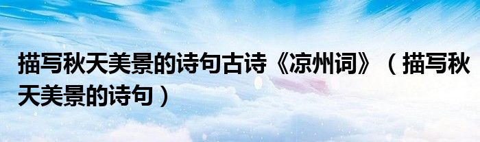 大家好,小晋来为大家解答以下问题,关于描写秋天美景的诗句古诗《凉州词》,描写秋天美景的诗句很多人还不知道,今天让我们一起来看看吧!