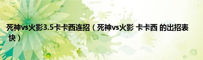 死神vs火影3.5卡卡西连招(死神vs火影卡卡西的出招表快)