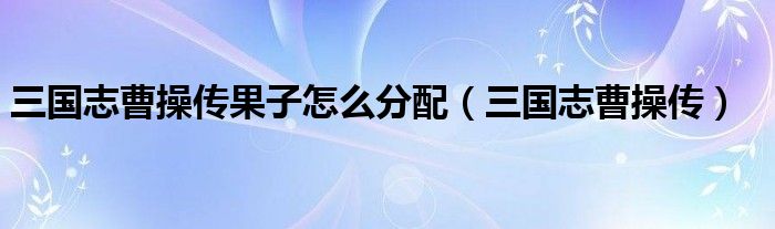 三国志曹操传果子怎么分配(三国志曹操传)