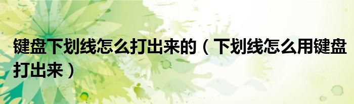 关于键盘下划线怎么打出来的,下划线怎么用键盘打出来这个很多人还不知道,今天菲菲来为大家解答以上的问题,现在让我们一起来看看吧!