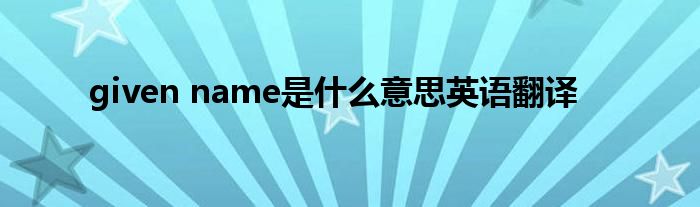 关于given name是什么意思英语翻译这个很多人还不知道,今天菲菲来为大家解答以上的问题,现在让我们一起来看看吧!