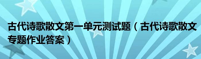 关于古代诗歌散文第一单元测试题,古代诗歌散文专题作业答案这个很多人还不知道,今天菲菲来为大家解答以上的问题,现在让我们一起来看看吧!