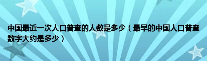 关于中国最近一次人口普查的人数是多少,最早的中国人口普查数字大约是多少这个很多人还不知道,今天菲菲来为大家解答以上的问题,现在让我们一起来看看吧!