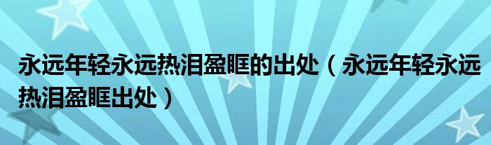 关于永远年轻永远热泪盈眶的出处,永远年轻永远热泪盈眶出处这个很多人还不知道,今天菲菲来为大家解答以上的问题,现在让我们一起来看看吧!