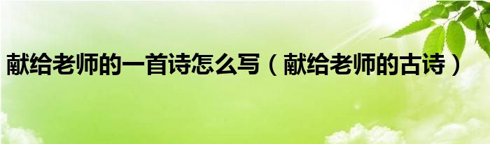关于献给老师的一首诗怎么写,献给老师的古诗这个很多人还不知道,今天菲菲来为大家解答以上的问题,现在让我们一起来看看吧!