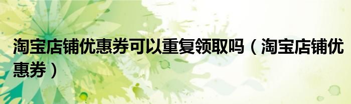 大家好,来宝来为大家解答以下问题,淘宝店铺优惠券可以重复领取吗,淘宝店铺优惠券很多人还不知道,今天让我们一起来看看吧!