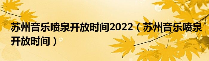 关于苏州音乐喷泉开放时间2022,苏州音乐喷泉开放时间这个很多人还不知道,今天菲菲来为大家解答以上的问题,现在让我们一起来看看吧!