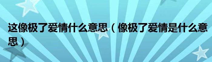 大家好,小晋来为大家解答以下问题,关于这像极了爱情什么意思,像极了爱情是什么意思很多人还不知道,今天让我们一起来看看吧!