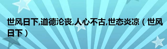 关于世风日下,道德沦丧,人心不古,世态炎凉,世风日下这个很多人还不知道,今天菲菲来为大家解答以上的问题,现在让我们一起来看看吧!