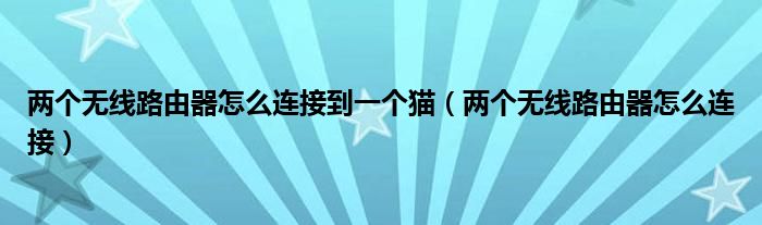 大家好,小飞来为大家解答以上问题,两个无线路由器怎么连接到一个猫,两个无线路由器怎么连接很多人还不知道,现在让我们一起来看看吧!