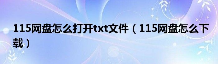 115网盘怎么打开txt文件(115网盘怎么下载)