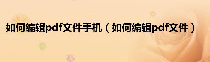 如何编辑pdf文件手机(如何编辑pdf文件)