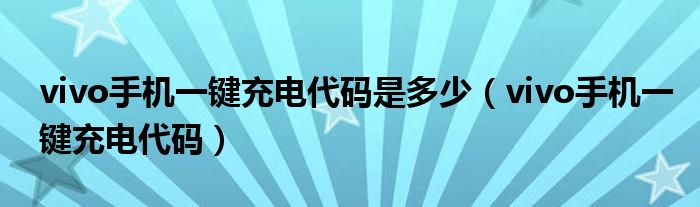 vivo手机一键充电代码是多少(vivo手机一键充电代码)