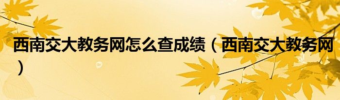 关于西南交大教务网怎么查成绩,西南交大教务网这个很多人还不知道,今天菲菲来为大家解答以上的问题,现在让我们一起来看看吧!