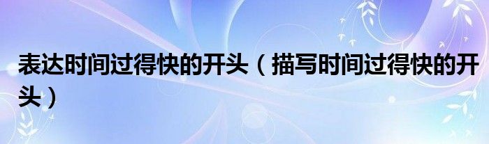 关于表达时间过得快的开头,描写时间过得快的开头这个很多人还不知道,今天菲菲来为大家解答以上的问题,现在让我们一起来看看吧!