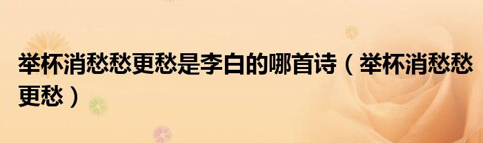 关于举杯消愁愁更愁是李白的哪首诗,举杯消愁愁更愁这个很多人还不知道,今天菲菲来为大家解答以上的问题,现在让我们一起来看看吧!