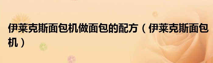 大家好,来宝来为大家解答以下问题,伊莱克斯面包机做面包的配方,伊莱克斯面包机很多人还不知道,今天让我们一起来看看吧!