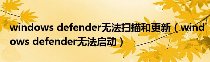 大家好,小飞来为大家解答以上问题,windows defender无法扫描和更新,windows defender无法启动很多人还不知道,现在让我们一起来看看吧!