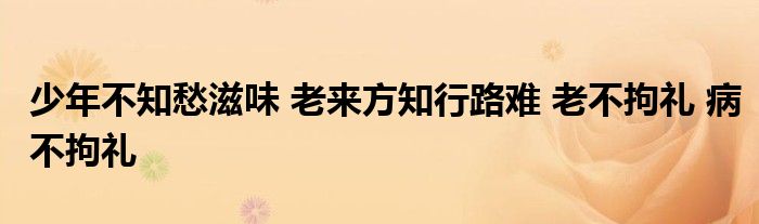关于少年不知愁滋味 老来方知行路难 老不拘礼 病不拘礼这个很多人还不知道,今天菲菲来为大家解答以上的问题,现在让我们一起来看看吧!