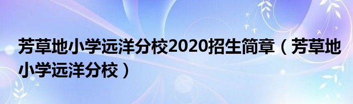 芳草地小学远洋分校2020招生简章(芳草地小学远洋分校)