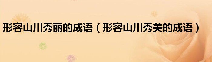 最佳答案大家好,小晋来为大家解答以下问题,关于形容山川秀丽的成语,形容山川秀美的成语很多人还不知道,今天让我们一起来看看吧!1、2.湖光山色:湖光山色。形容有水有山的美景。2、3、水和山:水波很美,山上风景明净。描述美丽的风景。3、4.水绿山绿:形容风景如画。4、5、单椒秀泽:单椒:孤立山峰;...