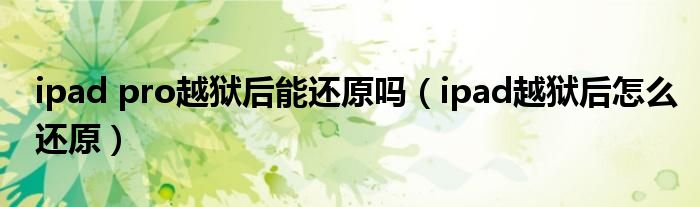 大家好,慧慧来为大家解答以上问题,ipad pro越狱后能还原吗,ipad越狱后怎么还原很多人还不知道,现在让我们一起来看看吧!