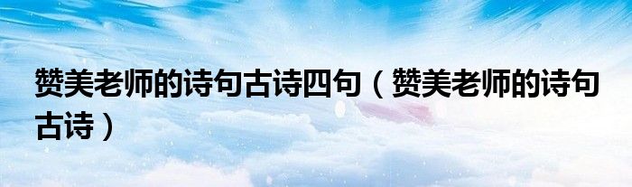 赞美老师的诗句古诗四句,赞美老师的诗句 古诗这个很多人还不知道,小飞来为大家解答以上的问题。现在让我们一起来看看吧!