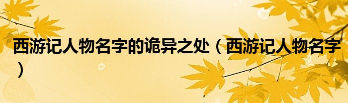 大家好,小飞来为大家解答以上的问题。西游记人物名字的诡异之处,西游记人物名字这个很多人还不知道,现在让我们一起来看看吧!