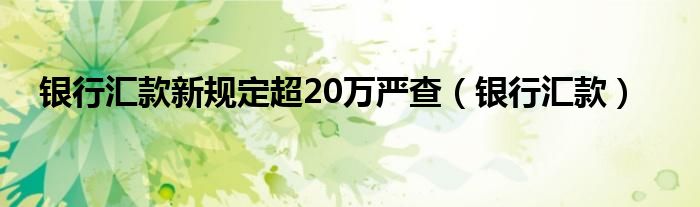 大家好,小飞来为大家解答以上的问题。银行汇款新规定超20万严查,银行汇款这个很多人还不知道,现在让我们一起来看看吧!