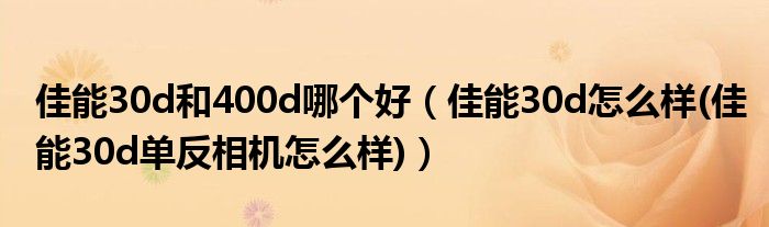 大家好,小常来为大家解答以上问题。佳能30d和400d哪个好,佳能30d怎么样(佳能30d单反相机怎么样)很多人还不知道,现在让我们一起来看看吧!