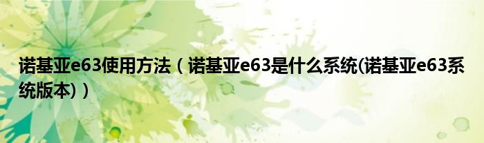 大家好,小常来为大家解答以上问题。诺基亚e63使用方法,诺基亚e63是什么系统(诺基亚e63系统版本)很多人还不知道,现在让我们一起来看看吧!