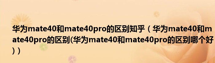 华为mate40和mate40pro的区别知乎(华为mate40和mate40pro的区别(华为mate40和mate40pro的区别哪个好))