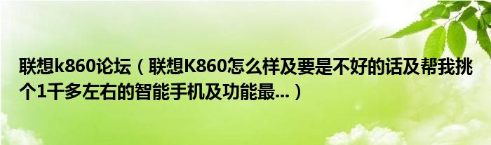 大家好,小常来为大家解答以上问题。联想k860论坛,联想K860怎么样及要是不好的话及帮我挑个1千多左右的智能手机及功能最...很多人还不知道,现在让我们一起来看看吧!