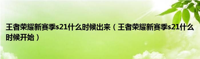 2、王者荣耀中S21赛季开始时间;