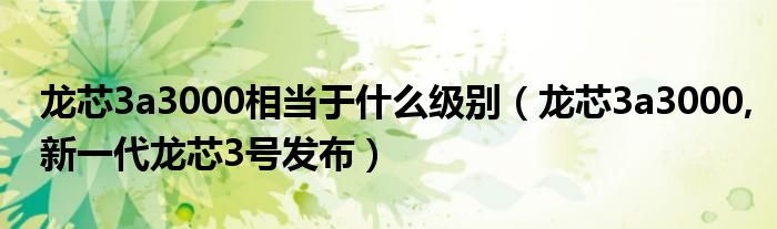 大家好,小常来为大家解答以上问题。龙芯3a3000相当于什么级别,龙芯3a3000,新一代龙芯3号发布很多人还不知道,现在让我们一起来看看吧!