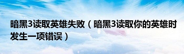 大家好,慧慧来为大家解答以上问题,暗黑3读取英雄失败,暗黑3读取你的英雄时发生一项错误很多人还不知道,现在让我们一起来看看吧!