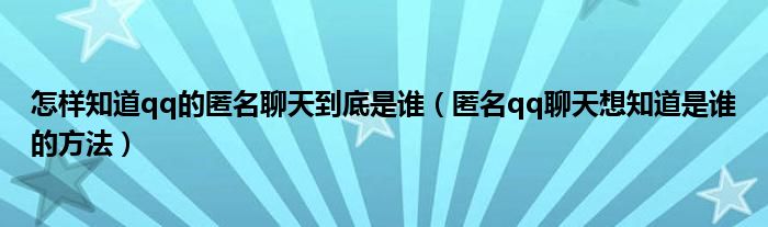 大家好,今天小悦来为大家解答以上问题。怎样知道qq的匿名聊天到底是谁,匿名qq聊天想知道是谁的方法很多人还不知道,现在让我们一起来看看吧!