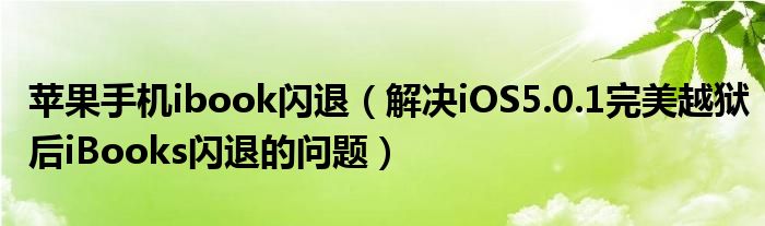 大家好,今天小悦来为大家解答以上问题。苹果手机ibook闪退,解决iOS5.0.1完美越狱后iBooks闪退的问题很多人还不知道,现在让我们一起来看看吧!