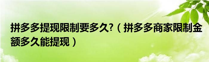 大家好,跳跳为你解答以上问题。拼多多提现限制要多久?,拼多多商家限制金额多久能提现这个问题很多人还不知道,现在让我们一起来看看吧!