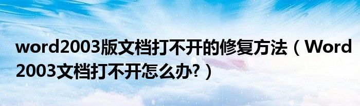 大家好,今天小悦来为大家解答以上问题。word2003版文档打不开的修复方法,Word2003文档打不开怎么办?很多人还不知道,现在让我们一起来看看吧!
